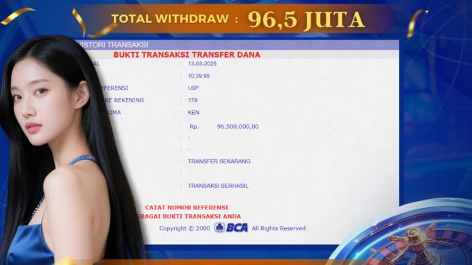 DEWATOGEL mengucapkan selamat kepada user id : KEN*** yang telah berhasil mendapatkan jackpot pada permainan LIVE CASINO DI 9 PUTTS. Kemenangan sebesar Rp 96.500.000,-. telah dibayarkan LUNAS oleh pihak dewatogel kepada pemilik user id setelah yang bersangkutan mengisi formulir withdraw. Proses pencairan dana berlangsung sangat cepat hanya dalam waktu 5-10 menit sudah berada dalam rekening pemilik user id. Bukti transfer yang dapat anda lihat adalah bukti SAH / VALID yang langsung di dapatkan melalui bukti transaksi dari Bank yang digunakan untuk pengiriman dana pada rekening pemilik user id. Terima kasih kami sampaikan kepada para pengguna setia DEWATOGEL yang telah menggunakan situs kami, sebagai Bandar Terpercaya yang pastinya membayar semua kemenangan member hingga lunas. Apakah DEWATOGEL PENIPU ? Reputasi “DEWATOGEL TERPERCAYA” sudah sangat melekat. puluhan hingga ratusan ribu pengguna setia DEWATOGEL tetap menggunakan situs terbesar dan terbaik di Indonesia ini. Hapus rasa was-was dan khawatir anda, kemenangan anda berapapun PASTI dibayarkan hingga lunas.