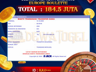 DEWATOGEL JACKPOT LIVE CASINO DI EUROPE ROULETTE Rp 184.500.000,- LUNAS